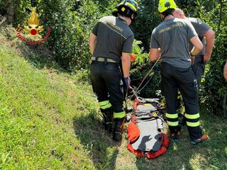 Il fatto è avvenuto attorno a mezzogiorno di lunedì in Contrada Costa: vista la particolare conformazione del terreno gli operatori hanno utilizzato tecniche speleo per recuperare l'uomo che è stato poi trasportato in codice giallo in ospedale