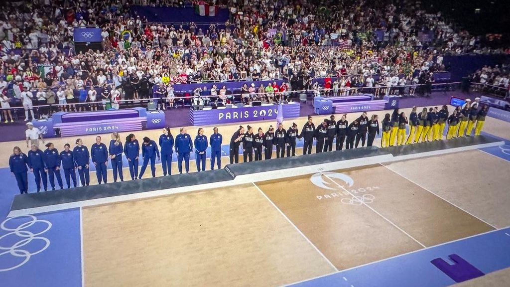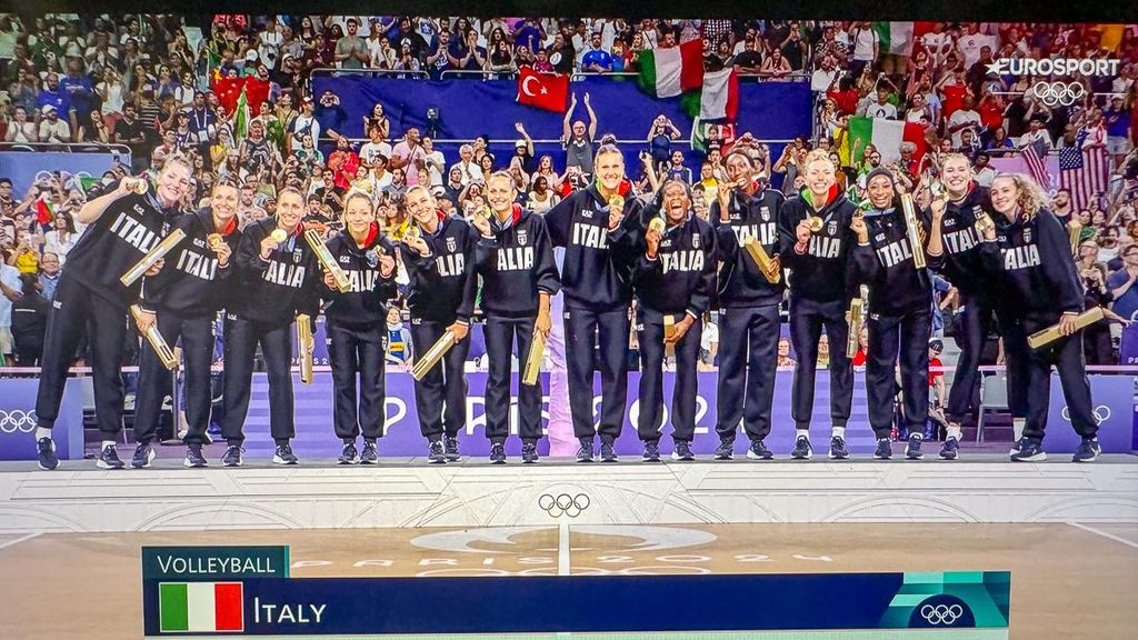 Le azzurre infrangono così il tabù della pallavolo italiana che non aveva mai vinto le Olimpiadi. L'oro dell'Italvolley è il 12esimo della spedizione azzurra a Parigi e la 40esima medaglia come a Tokyo. Per gli Stati Uniti quella di Parigi rappresenta la quinta medaglia olimpica consecutiva: 2008 argento; 2012 argento; 2016 Bronzo e 2020 oro. Nel roster delle americane ben 12 atlete su 13 (comprendendo la riserva) militano o hanno militato nel campionato italiano. L'unica a non averci giocato è il libero Justine Wong-Orantes. In tribuna a Parigi anche la campionessa dello sci mondiale Sofia Goggia con il presidente del Coni Giovanni Malagò a soffrire e gioire in tribuna. Decisiva la prestazione di Paola Egonu con 22 punti messi a segno per il 3-0 finale (25-18; 25-20; 25-17). Medaglia di bronzo al Brasile che ieri ha battuto la Turchia 3-1.
