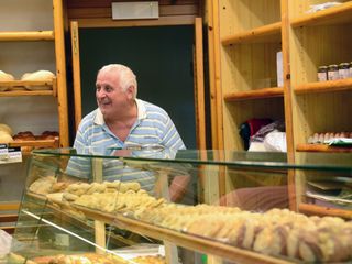«In estate faccio poche torte, la gente ama più il gelato, ma su ordinazione preparo tutto ciò che si vuole. Anche le Parigine e i Ventagli, che nessuno impasta più, il pan meìno per San Giorgio, il castagnaccio, pane e ossa dei morti, i biscottini con la graniglia di zucchero e i “pavesini”. La moda cambia in fretta, c’è stato il periodo della farina di kamut, poi la mania del lievito madre, i giovani non comperano più il pane, vogliono focaccine e pizzette, qui ne passano centinaia per andare a scuola, e molti si fermano a prendere la brioche. Anche la michetta non va più, ne faccio pochissime e le vogliono soltanto gli anziani».