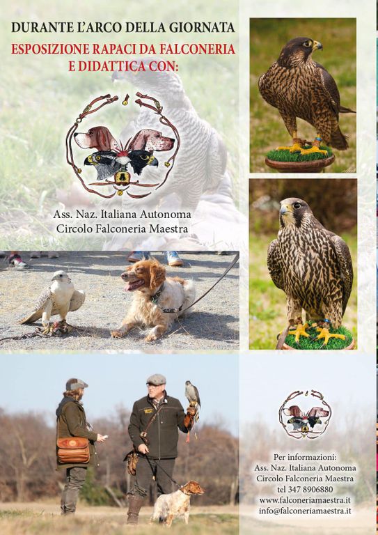 Nell’arco della giornata sarà allestita anche un’esposizione di rapaci da falconeria a cura dell’Associazione Nazionale Italiana Circolo Falconeria Maestra.