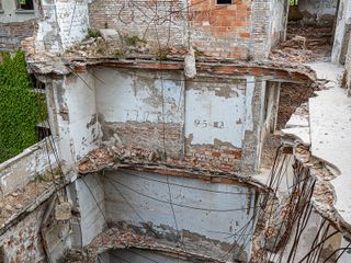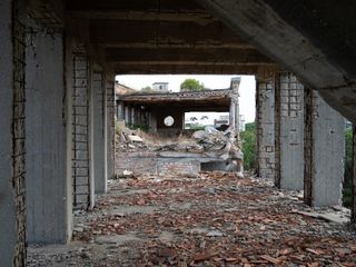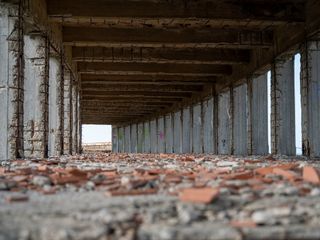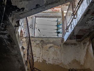 Le fotografie di Galbiati mostrano la vastità degli spazi in ossequio alla grandeur imposta dal regime, porticati e corridoi, muri crollati e il ferro del cemento armato che penzola dalle pareti divelte, uno scenario perfetto per il film horror “Zeder” che Pupi Avati girò qui nel 1983. Un deserto di cemento e mattoni dove tra i bimbi nascevano amicizie e competizioni, e tra le bimbe forse l’idea di una famiglia e dei figli, in un’Italia già segnata dalla sconfitta e dall’agonia delle bombe.