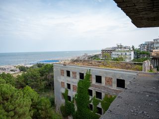È il fotografo varesino Alessandro Galbiati a farci scoprire una struttura gigantesca, che un tempo contava anche su un Luna Park e fu adibita, dopo la chiusura nel 1941 a causa della guerra, prima come prigione dalle truppe tedesche e quindi come ospedale militare per i soldati australiani, con i viali a lato degli edifici a fare da pista di decollo e atterraggio per gli aerei della Royal Australian Air Force. Di proprietà della Regione Emilia Romagna, dagli anni ’50 è in stato di abbandono, peggiorato dopo il crollo di molte sue parti nel 2020, ma non viene demolita per il valore storico artistico, come simbolo dell’architettura razionalista del tempo.