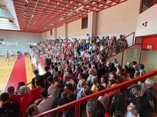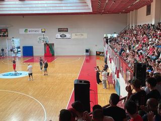 Già ben prima delle 18 in tanti si sono assicurati il posto per poter abbracciare i biancorossi del neo coach Herman Mandole. Che è sceso sul parquet e al microfono, in mezzo al campo, ha detto rivolto al popolo biancorosso: «Sono contento che siate qui, grazie a voi ci aspetta una stagione meno complicata quando giocheremo in casa». Applausi.