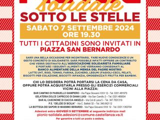 Giunto ormai alla sua quinta edizione, sabato 7 settembre, alle ore 19.30 in piazza San Bernardo, torna a Castellanza il pic-nic solidale sotto le stelle.