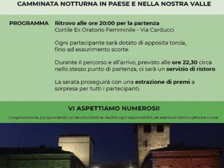 A partire dalle 20 di sabato 31 agosto, dunque, tutti coloro che lo desiderano potranno raggiungere i volontari delle due associazioni all’interno del cortile dell’ex oratorio femminile di via Carducci, dove ad ogni partecipante alla camminata sarà consegnata come da tradizione, una torcia da portare con sé per illuminare il percorso.