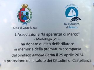L’ultimo omaggio, poi, è venuto da molto lontano, dal comune di Martellago in Provincia di Venezia; qui ha sede l’associazione la Speranza di Marco, che, nel mese di aprile, dopo aver sentito quanto successo a Castellanza, ha scritto al comune per comunicare la volontà di donare un defibrillatore ai castellanzesi, che è stato posizionato tra l’ingresso della biblioteca e quello della Capannina alla presenza, ancora una volta, dei genitori di Mirella Cerini.