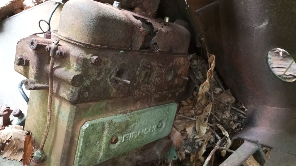 La motrice, realizzata in metallo, ha ancora i cavi elettrici sul piccolo cruscotto, dove è presente il serbatoio del carburante, il manometro per far andare il vagoncino avanti e indietro e il motore bicilindrico di una certa ditta "Bianchi". Le ruote e il sedile non ci sono più, così come il pianale.