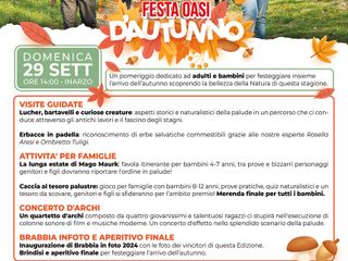 Staff e volontari Lipu della Riserva Naturale Palude Brabbia invitano quindi tutti domenica 29 settembre alle 15 in oasi per un evento speciale con tante iniziative e qualche sorpresa. Sarà un pomeriggio dedicato ad adulti e bambini, un momento per festeggiare insieme l’arrivo dell’autunno per scoprire la bellezza della Natura di questa stagione.