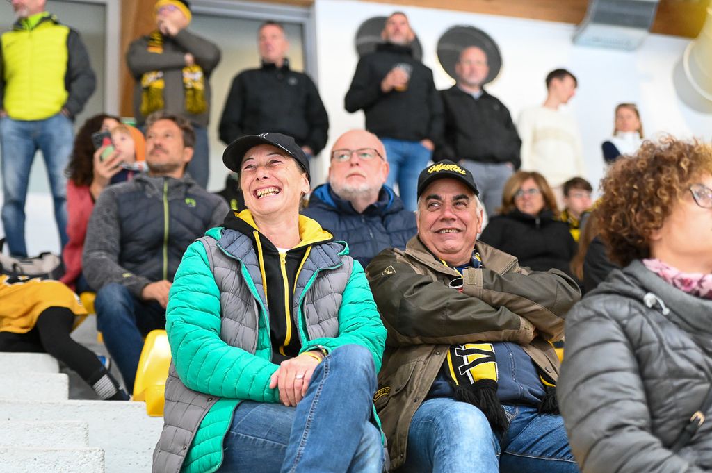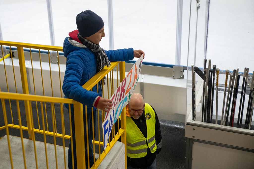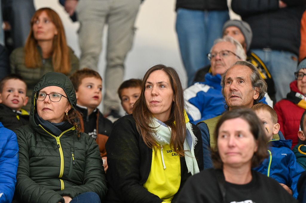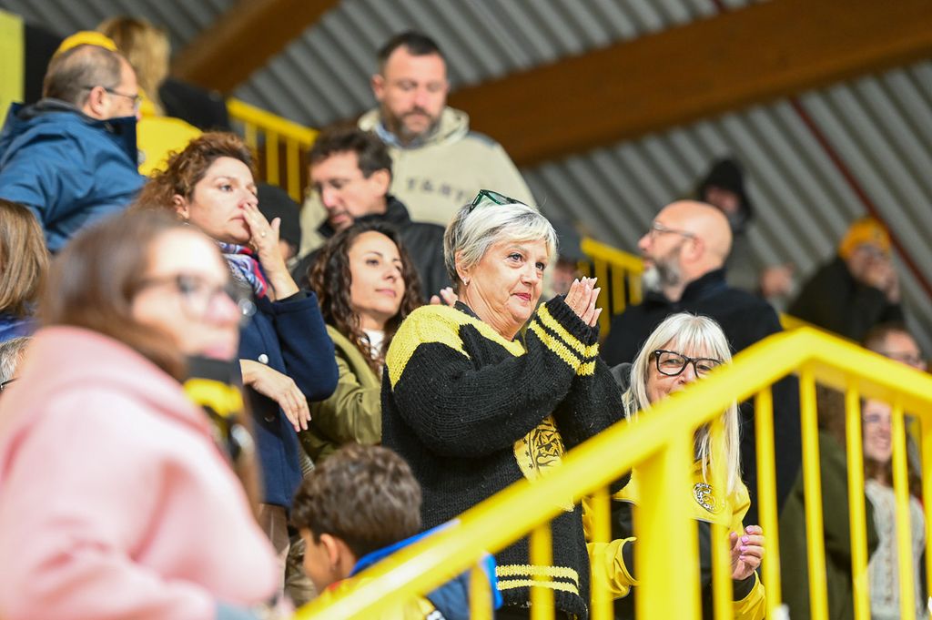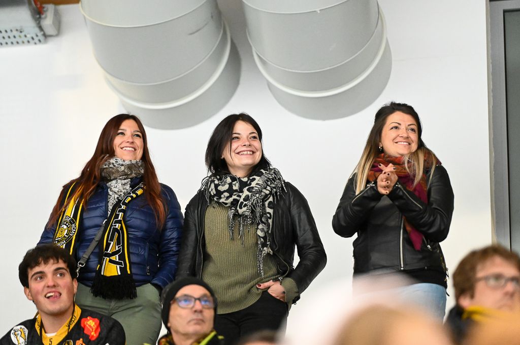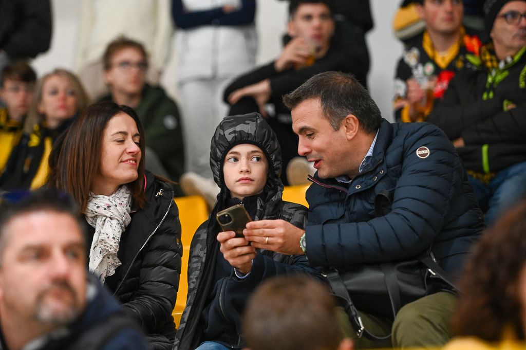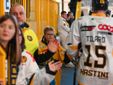 Hanno rubato i cuori, oltre che gli occhi, anche lo spettatore d'eccezione Cesare Carlacci - oggi sessantaquattrenne, per sempre eroe degli scudetti e della leggenda giallonera (nessuno ha segnato i suoi 527 punti con 251 gol e 276 assist, davanti a Micheletti, a quota 271, e Denis Houle con 255: leggi QUI) - così come il solito grande pubblico di via Albani. Novecento spettatori, che a colpo d'occhio sembravano perfino di più, ripresi dagli scatti di Alessandro Umberto Galbiati, in cui c'è anche un giovane tifoso del Fassa con striscione per i Falcons e un altro con un cartello per Marco Matonti.