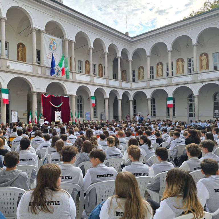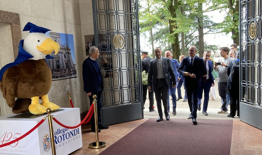 Il ministro è stato accolto dagli studenti sulle note dell'inno di Mameli e di «Scatenate la gioia, la festa siamo noi». Poi Ginevra e Gabriele, due studenti del Rotondi, hanno ripercorso la storia del Collegio, un'opera educativa voluta 425 anni fa dal conte Giovanni Terzaghi («Erudire et edocere») che prosegue oggi sotto la direzione del rettore don Andrea Cattaneo.
