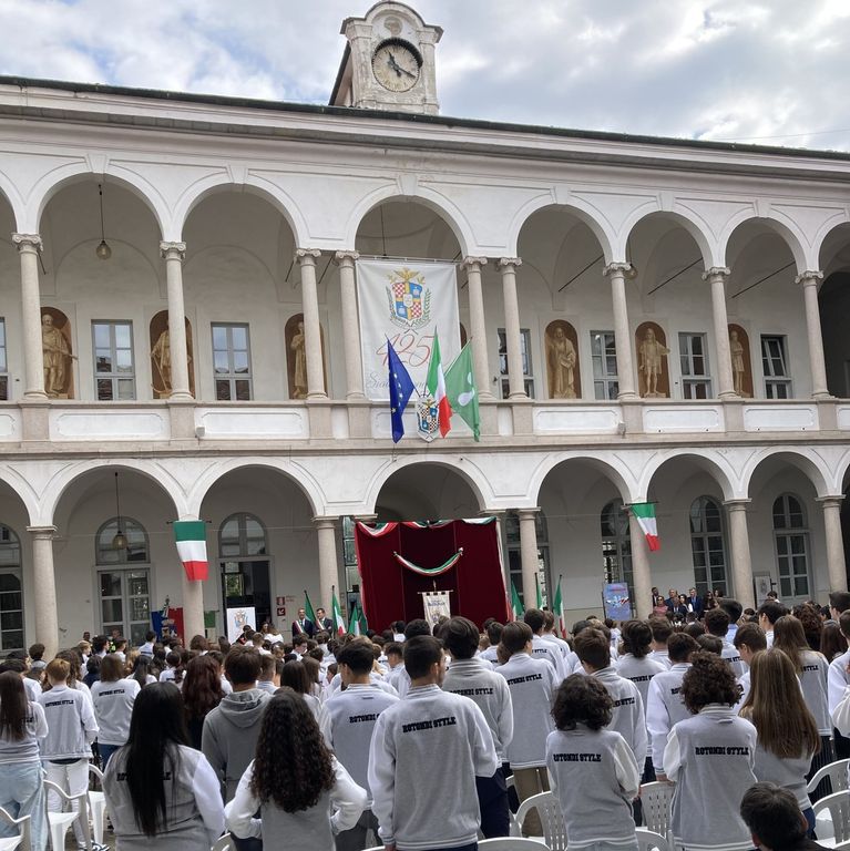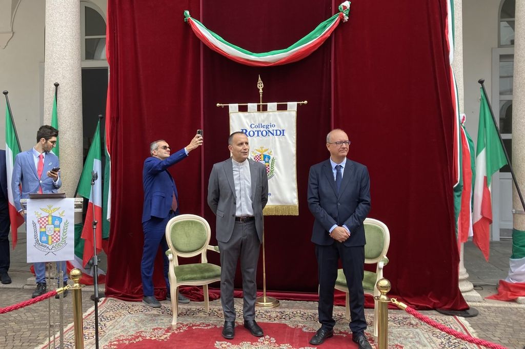 Il ministro ha ringraziato e celebrato il lavoro «appassionato dei tanti docenti in una realtà così bella e storicamente significativa». Ed ha ribadito: «Credo fortemente nella scuola costituzionale, quel modello che risente in modo tangibile del messaggio dei costituenti cattolici e liberali che hanno voluto mettere al centro la persona e al suo servizio lo Stato. Partendo da questa considerazione non posso che trovarmi perfettamente a mio agio con voi – ha detto Giuseppe Valditara alla numerosa platea di uditori nel quadriportico d'onore del Collegio Rotondi – Perché siete una testimonianza perfetta di questo modello di scuola costituzionale, che mette al centro lo studente. Mi sono battuto convintamente per avere la possibilità di utilizzare una parte, circa 150 milioni di euro, dei fondi Pnrr per le paritarie e avere così una piena equiparazione e anche per ampliare l’utilizzo del bonus scuola».