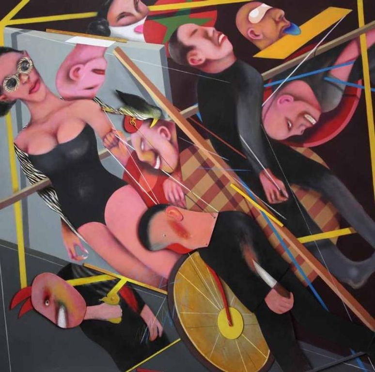 I tormenti dell’uomo contemporaneo, la globalità asfissiante, i guasti irreparabili di una società allo sbando sono i temi che Luca affronta da sempre e mette nei suoi quadri a tre dimensioni, in cui figure surreali pervadono la tela e danno luogo a rappresentazioni a metà tra commedia e tragedia, in teatrini dell’assurdo dove cortocircuiti esistenziali animano una danza macabra di figure distorte e contorte, di volti allucinati e a smorfie orrorifiche, fauci animalesche e risate sataniche.
