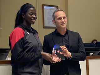 Applausi per le nuove magliette da gara. Capitan Lualdi ha sfoggiato la prima divisa, biancorossa con piacevoli inserti bordeaux, mentre la maglia del libero, color cioccolato, è in ossequio allo sponsor Laica. Altri applausi, meritatissimi, per Giorgio Ferrario, ancora responsabile comunicazione dopo un breve periodo di separazione, che ha nuovamente e simbolicamente ricevuto il premio della Lega Volley Femminile nella sala consigliare della sua Busto. Un riconoscimento al “miglior progetto di comunicazione” (Il Camera Cafè Uyba) della passata stagione pallavolistica.