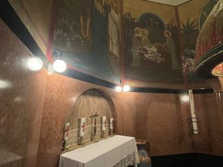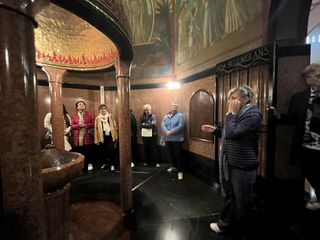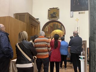 Poi tutti in chiesa a scoprire ogni dettaglio, dal disegno e dai rivestimenti dell'esterno all'altare con il ciborio e ai segnali di modernità come il sacerdote che si rivolgeva già ai fedeli non dando le spalle, le tele della Via Crucis, il battistero e naturalmente la statua di Sant'Edoardo.