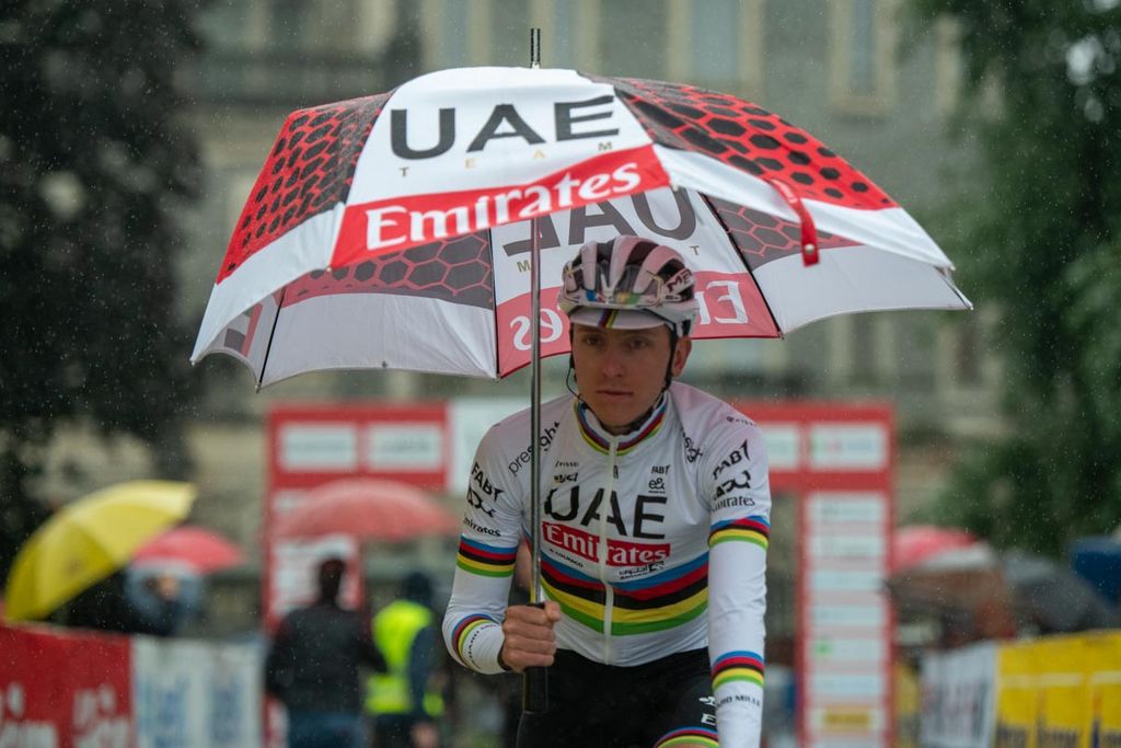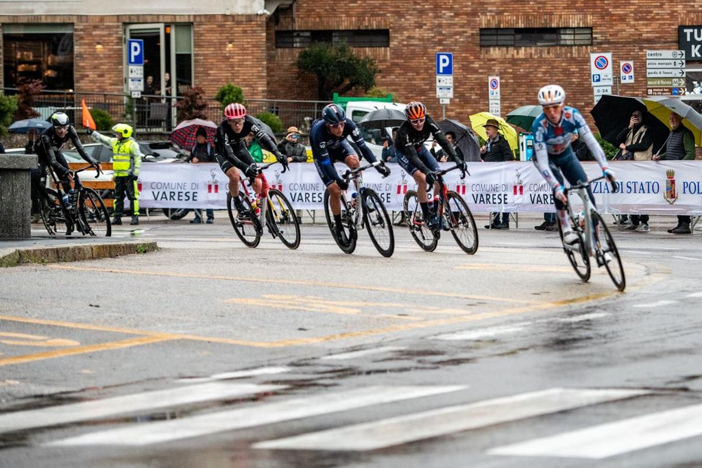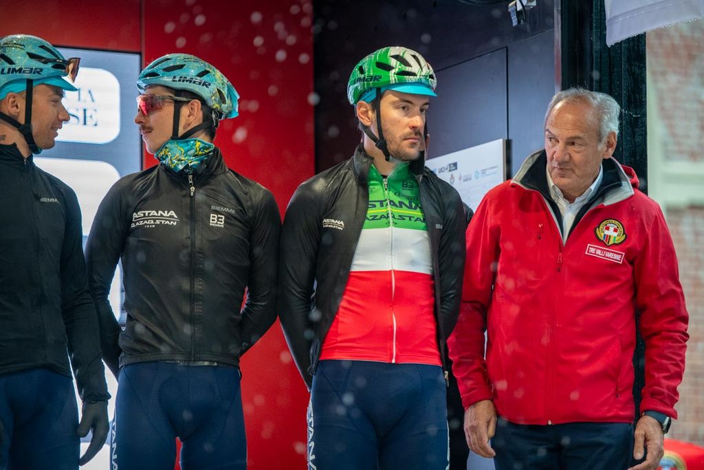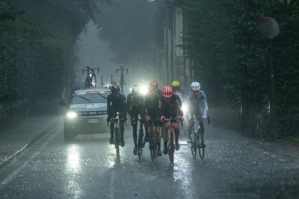 Le immagini prese alla partenza, a Busto Arsizio, quando ancora - facendo finta di non vedere tutta la sventura che stava cadendo dal cielo - si immaginava una gara completa, vera, combattuta.