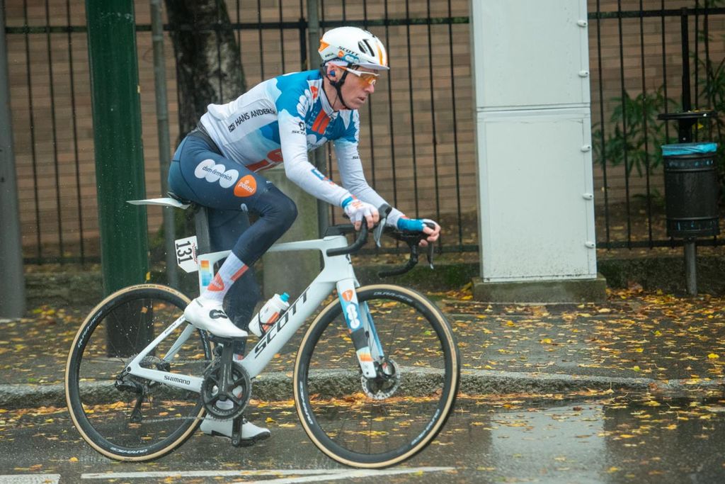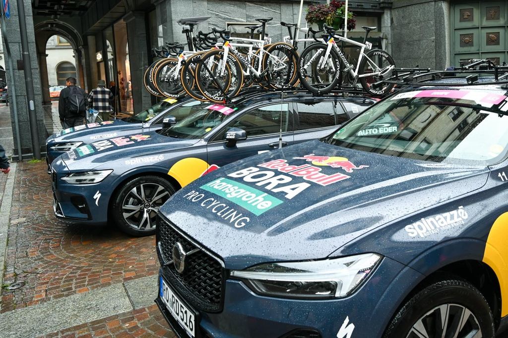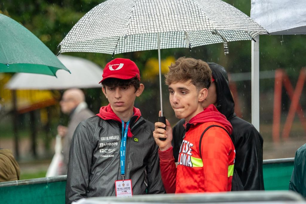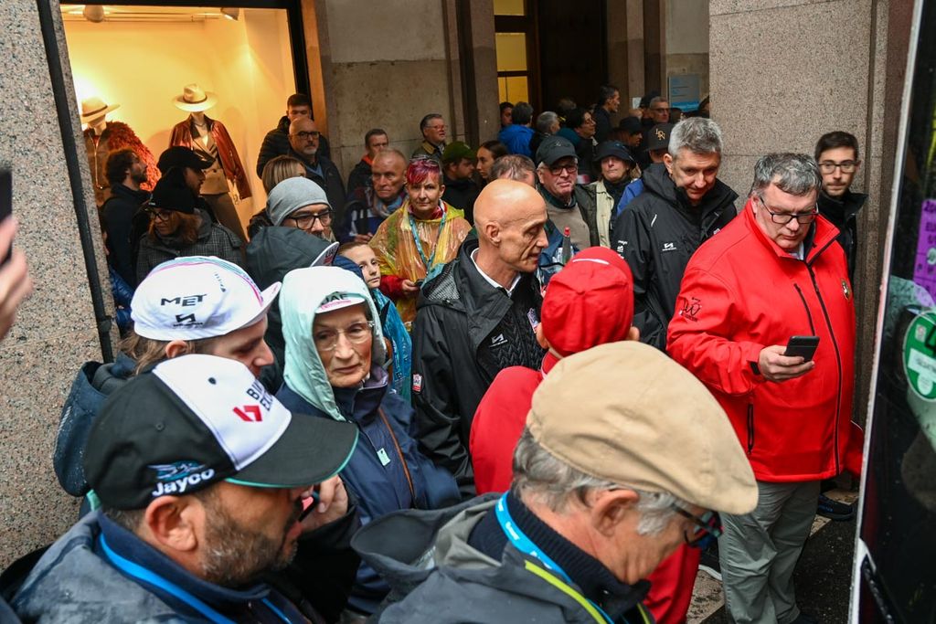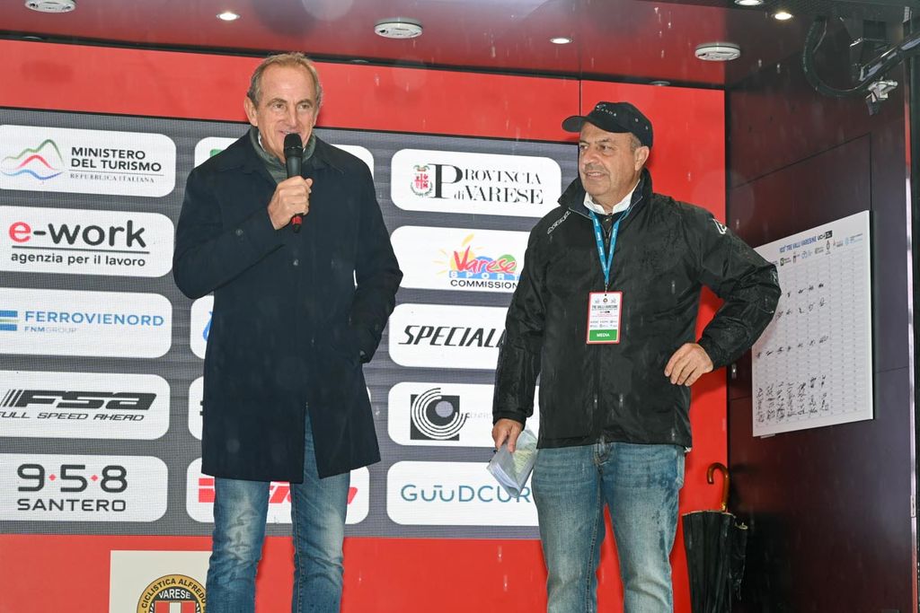 Le immagini prese alla partenza, a Busto Arsizio, quando ancora - facendo finta di non vedere tutta la sventura che stava cadendo dal cielo - si immaginava una gara completa, vera, combattuta.