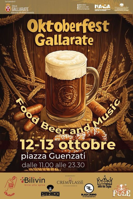 La città di Gallarate si trasformerà in una piccola Monaco di Baviera con l'arrivo dell'Oktoberfest in Piazza Guenzati. Il 12 e 13 Ottobre, dalle 11:30 alle 23:30, il cuore della città accoglierà tutti coloro che desiderano vivere l’atmosfera autentica del tradizionale evento bavarese, tra birra originale, prodotti tipici e tanta musica.