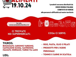 Croce Rossa Italiana – Comitato di Varese, Tradate e Gazzada Schianno organizza una grande Raccolta Alimenti sabato 19 ottobre 2024. Il loro magazzino è quasi vuoto e hanno urgente bisogno di rifornirlo per poter garantire la consegna mensile dei pacchi alimentari alle famiglie in difficoltà sul nostro territorio.