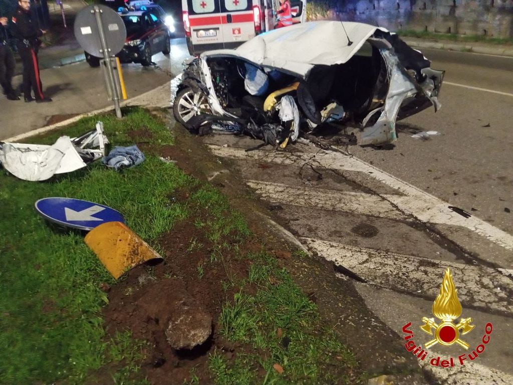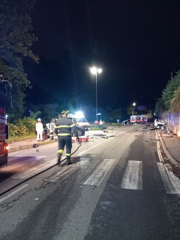 Due auto si sono scontrate violentemente nella notte tra venerdì e sabato, attorno alle 3 del mattino in via Costa del Re a Tradate sulla strada per Pianbosco.