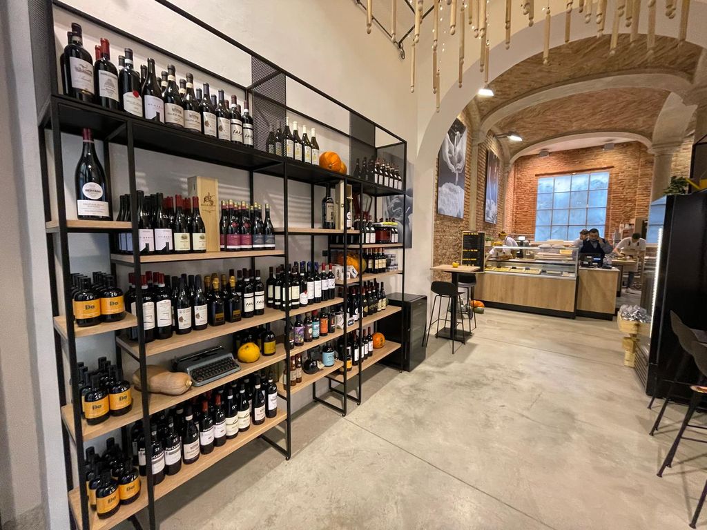 Sugli scaffali allestiti nelle sale è possibile scegliere altri prodotti campioni del gusto e della tipicità. La pasta fa naturalmente la parte del leone, da quella del Trentino (da abbinare con sughi di cacciagione) alla Don Antonio napoletana. Ma non solo: è possibile trovare confezioni di Giardiniera di Vicenza e aceto di Modena, così come dolci come il Panforte, oltre a olio toscano targato "Dò" e al vino da tutte le regioni d'Italia con bottiglie della cantina della vicina Gnoccheria. Tutti i prodotti sono made in Italy, tranne un'escursione spagnola sui prodotti ittici tipici come sardine e sgombri.