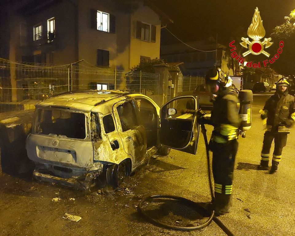 FOTO. Auto in fiamme a Maccagno, incendio spento dai vigili del fuoco