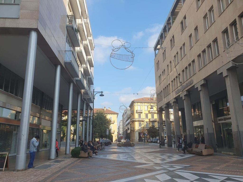 Prematuro parlare di aria natalizia, ma in via Milano sono già state allestite le decorazioni luminose che richiamano le palline dell’abete, mentre quelle in via Daniele Crespi hanno la forma di pacchetti regalo.