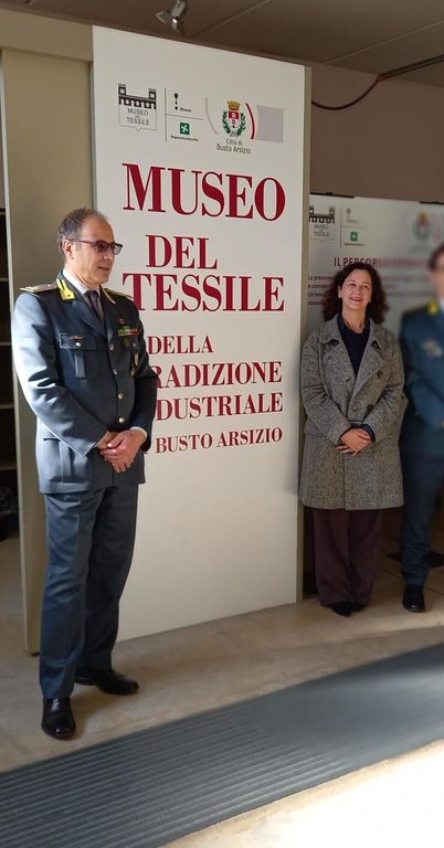 Visita del Generale Crescenzo Sciaraffa, comandante provinciale della Guardia di Finanza di Varese, al Museo del Tessile di Busto, luogo simbolo della città. Il Generale è stato accompagnato dall'assessore alla cultura Manuela Maffioli, affiancata dalla responsabile dell’ufficio didattica Museale e Territoriale Valentina Zaro. La visita è stata chiesta dallo stesso Generale.