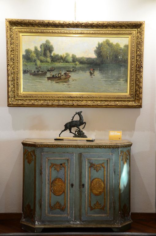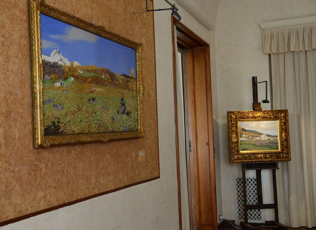 Il salotto ricostruito a Villa San Martino è quello delle romanze di Francesco Paolo Tosti e del giovane Puccini, pianista accompagnatore in casa di Marco Sala e Giulio Ricordi, del rosolio e delle poesie di d’Annunzio, un luogo in cui parlare di arte e musica ma anche di politica e sentimenti, con i proprietari quasi sempre collezionisti di quadri e sculture. Accanto ai due splendidi Boldini, il ritratto di Emiliana Concha De Ossa e della contessa di Gunzbourg, e a quello di Léontine, la pittura “sociale” di Domenico Induno, le donne scapigliate di Ranzoni e Cremona, il paesaggio di Mosé Bianchi e uno straordinario quadro, intitolato “La sera”, di Plinio Nomellini, amico della bohème pucciniana di Torre del Lago, sui toni dell’azzurro e del violetto. Degni di nota poi “L’ombrellino rosso” di Achille Formis Befani, con le barche che si fanno cullare dal Ticino a Sesto Calende, e un piccolo ma notevolissimo Pellizza da Volpedo, “Biancheria al sole”, un olio su cartone con la luce che vibra tra i panni stesi grazie alla magia di pochi colpi di pennello.