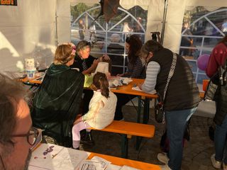 Nel primo pomeriggio erano già stati montati la cucina, il gazebo del laboratorio allestito dal comitato genitori dell’asilo Scotti, il gazebo che ha ospitato l'Avis con il suo zucchero filato e Associazione Lilt (che ha distribuito un centinaio di palloncini) e l'immancabile cioccolata calda preparata dagli Amici del Presepe.