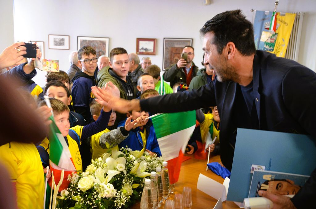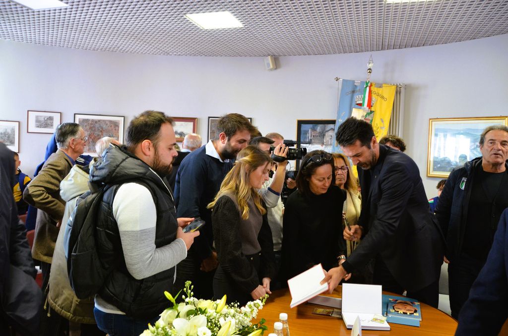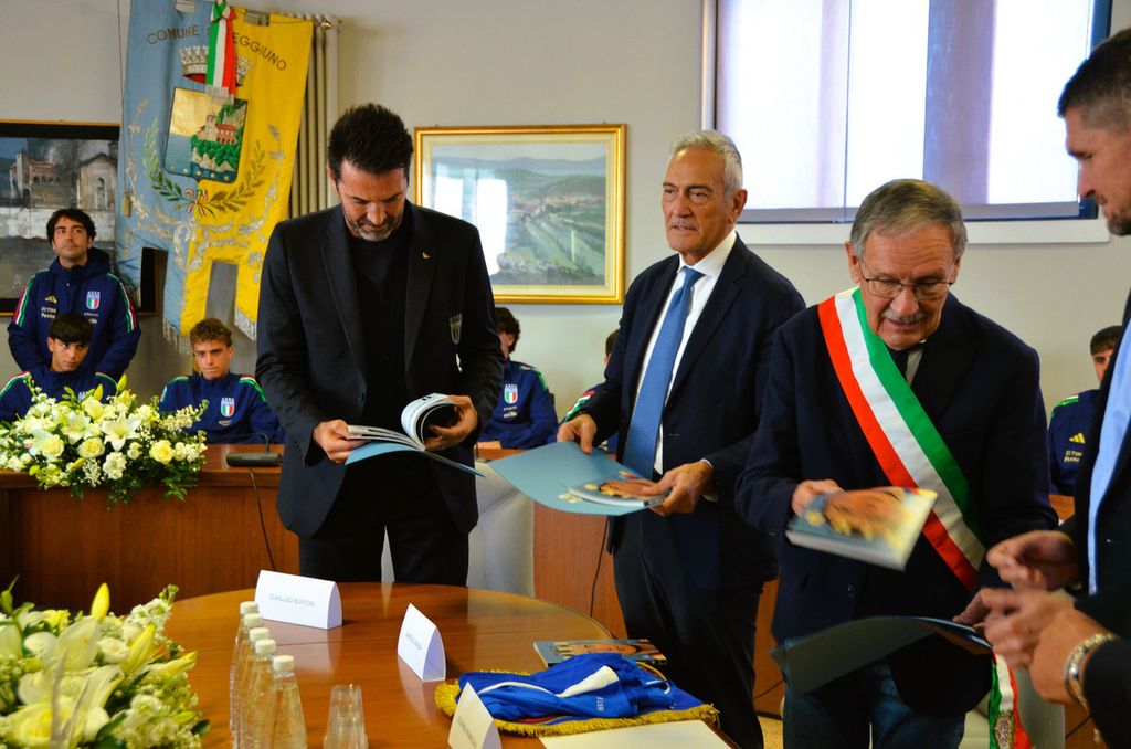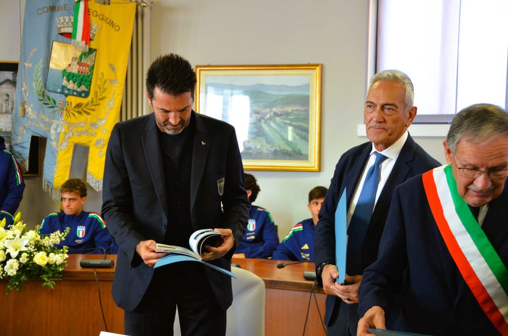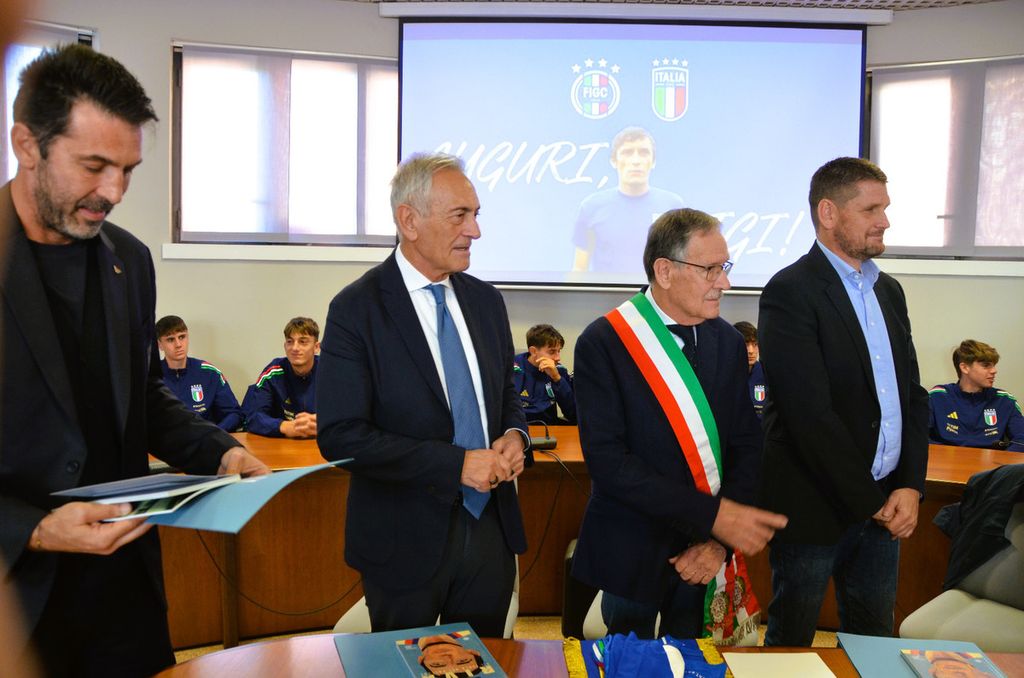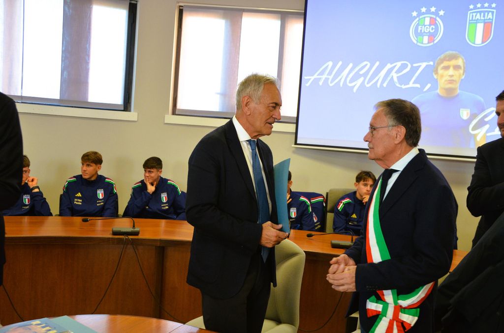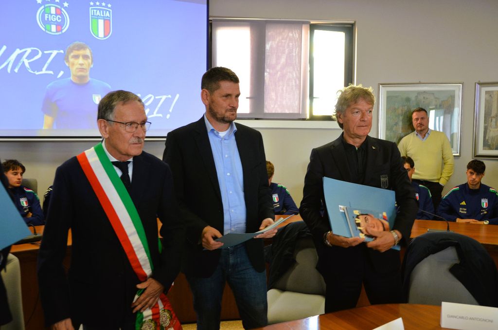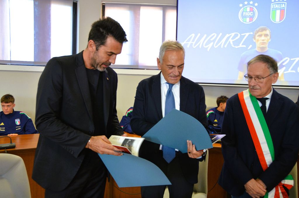 Gli ottant’anni di Gigi Riva sono stati celebrati stamattina presso il municipio di Leggiuno (leggi QUI), dove per l’occasione hanno fatto visita in paese i delegati della FIGC: il presidente Gabriele Gravina e i campioni del mondo Gianluigi Buffon e Giancarlo Antognoni.