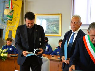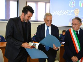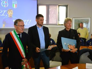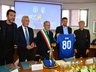 Gli ottant’anni di Gigi Riva sono stati celebrati stamattina presso il municipio di Leggiuno (leggi QUI), dove per l’occasione hanno fatto visita in paese i delegati della FIGC: il presidente Gabriele Gravina e i campioni del mondo Gianluigi Buffon e Giancarlo Antognoni.