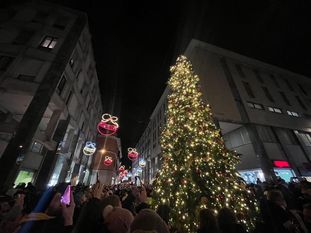 «Cinquecentomila persone? Le abbiamo già superate». Scherza il sindaco Emanuele Antonelli, ma nella sua battuta – che si rifà all’obiettivo dichiarato per il questo periodo natalizio (leggi qui) – c’è la soddisfazione per una serata ben riuscita. L’accensione dell’albero e delle luminarie, preceduta dalla parata con Babbo Natale, ha infatti richiamato in centro tanta gente.
