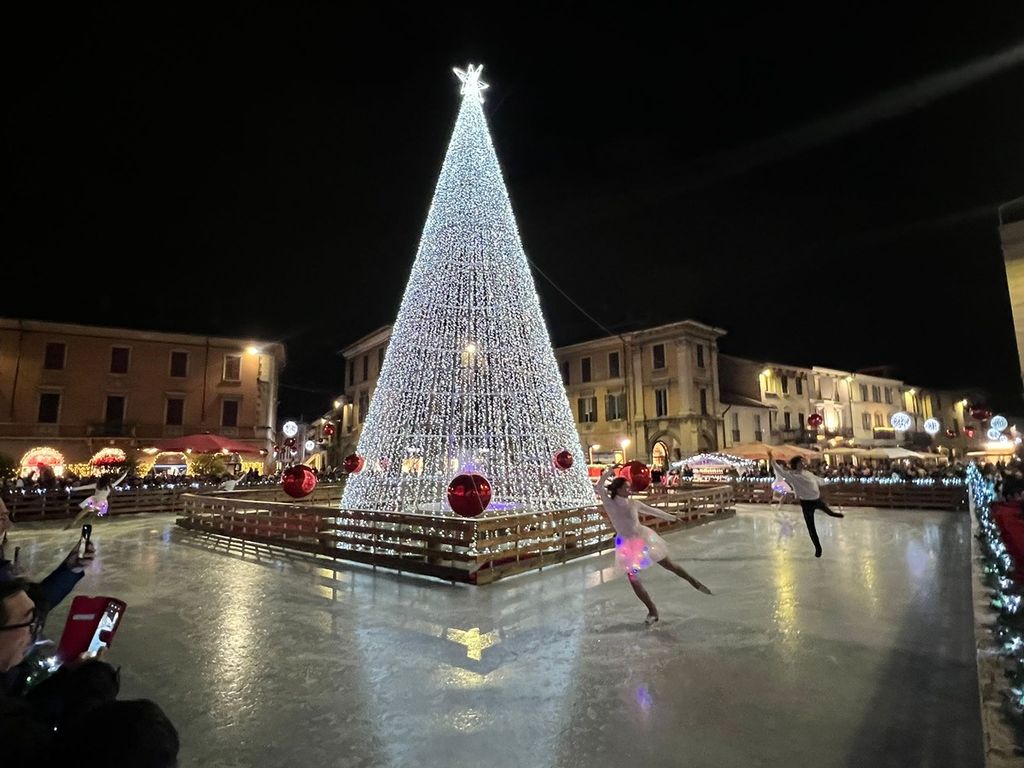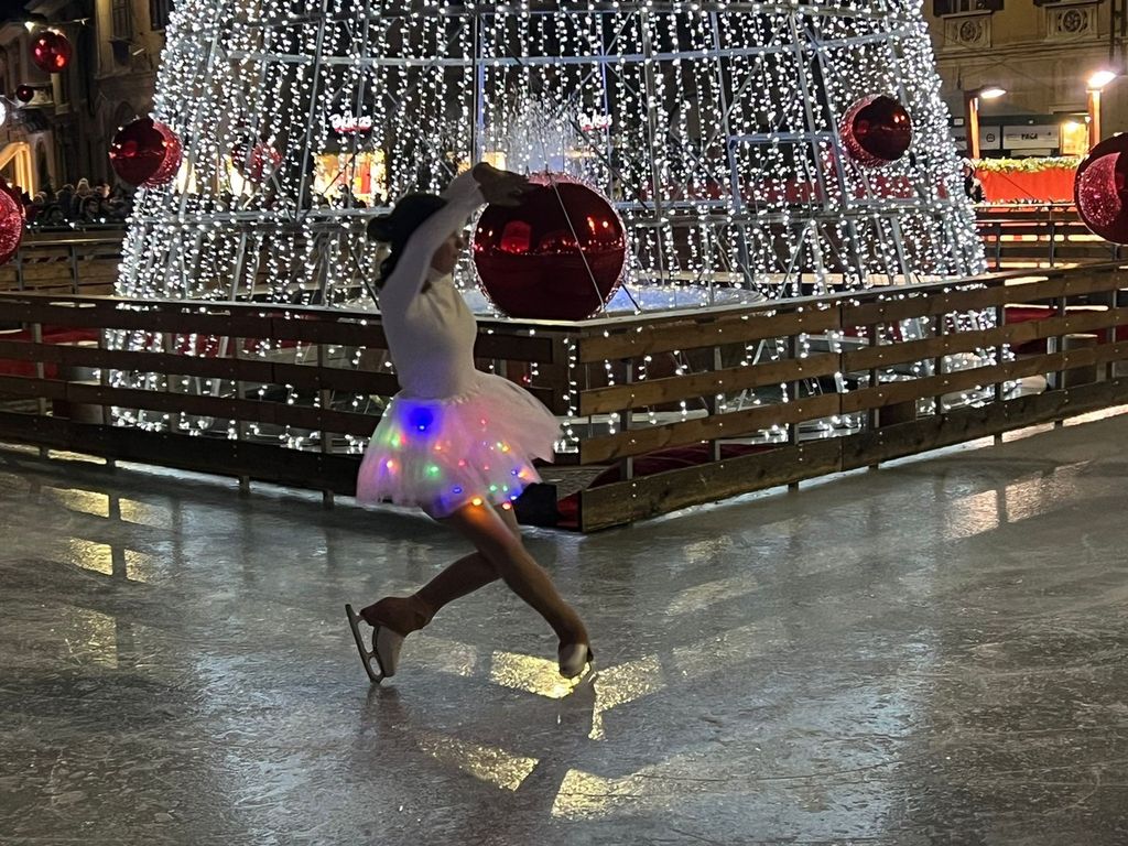 Appena dopo l’accensione dell’albero di Natale, la pista di pattinaggio allestita in piazza ha ospitato uno spettacolo di ice skating, eseguito dal gruppo “Ice Emotion”, che ha catturato l’attenzione di grandi e piccoli. Le evoluzioni delle pattinatrici, sottolineate dalle luci soffuse e dai riflessi del ghiaccio, hanno contribuito a creare un’atmosfera suggestiva e coinvolgente.