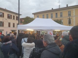 Nel frattempo, in piazza Santa Maria gli alpini di Busto e la Croce rossa stanno distribuendo un aperitivo natalizio a base di vin brulè e panettone.