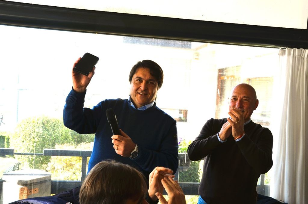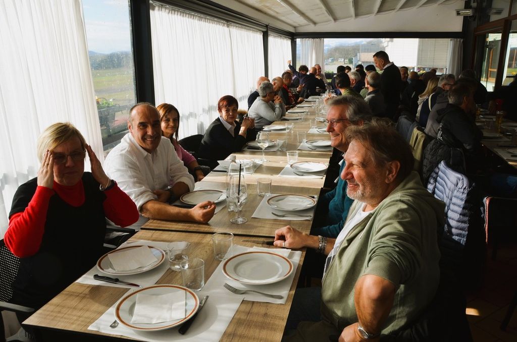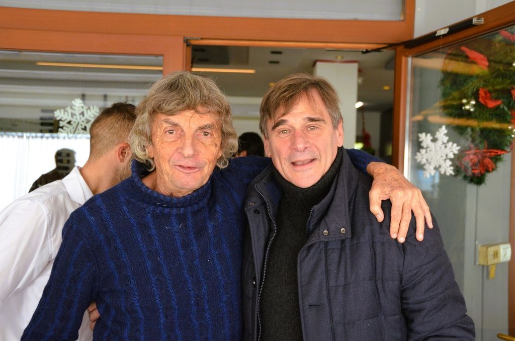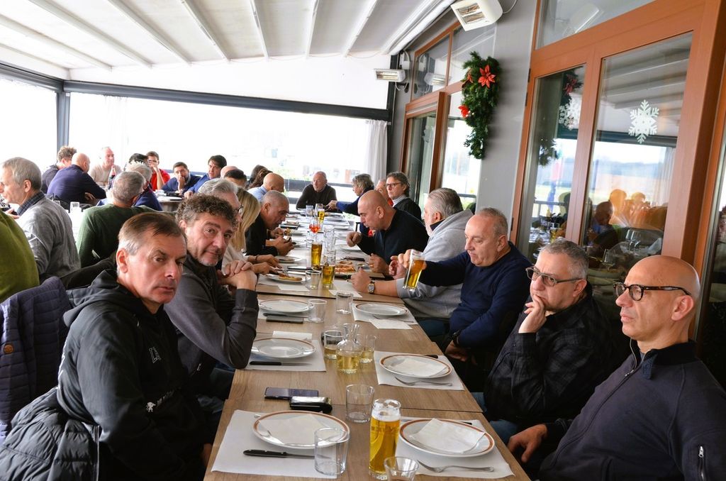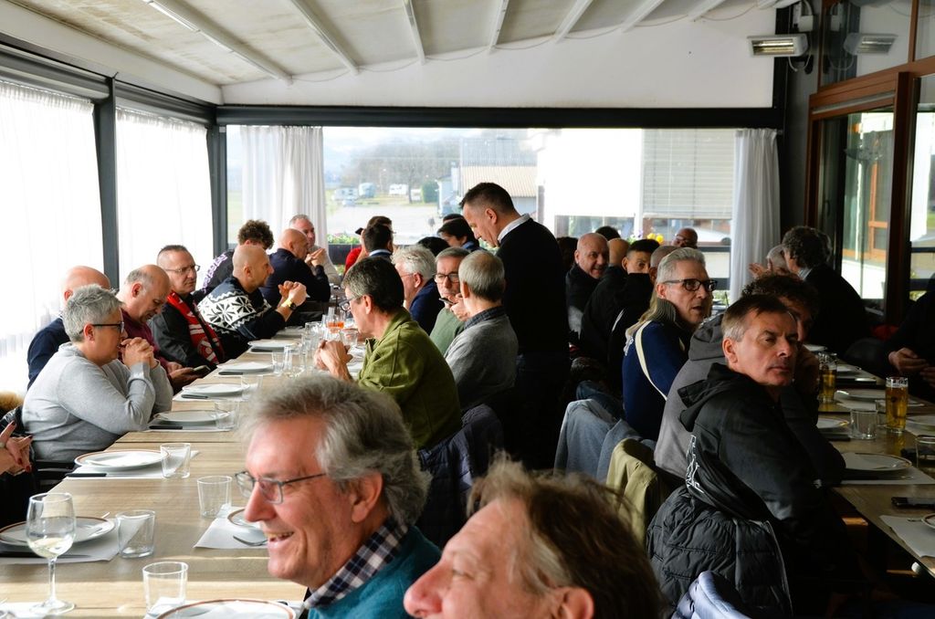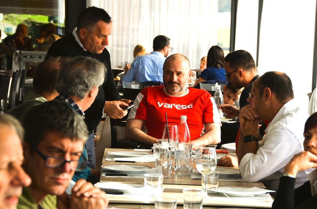 Ai tavoli del locale del lungolago della Schiranna, seduto accanto a Enzo Rosa, motore della bellissima iniziativa, c'era anche Claudio Milanese, che di quel Varese lontanissimo - ma vicinissimo al cuore - era già innamorato così come oggi lo è della sua Solbiatese per un'altra scalata che, nei sogni, lo porterà là dove lui sa di voler e poter arrivare, e anche Claudio ha omaggiato Tatti-gol, che sta ancora lottando con ogni forza contro la encefalomielite disseminata acuta e non ha potuto esserci (clicca QUI per il video con le sue parole e anche QUI), con quel coro che infonde coraggio e voglia di lottare. Un coro che ha commosso Alessandro fino alle lacrime.