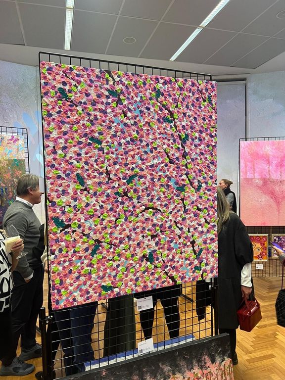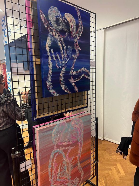 «Il messaggio che vorrei dare con queste opere non è di soffermarsi sulla violenza: quella l’ho già elaborata, e lo capite da questi colori. Sono i colori della rinascita, un pensiero di speranza e di positività, perché solo dalle ceneri si può ritornare a vivere. E la forza dell’amore vince su tutto».