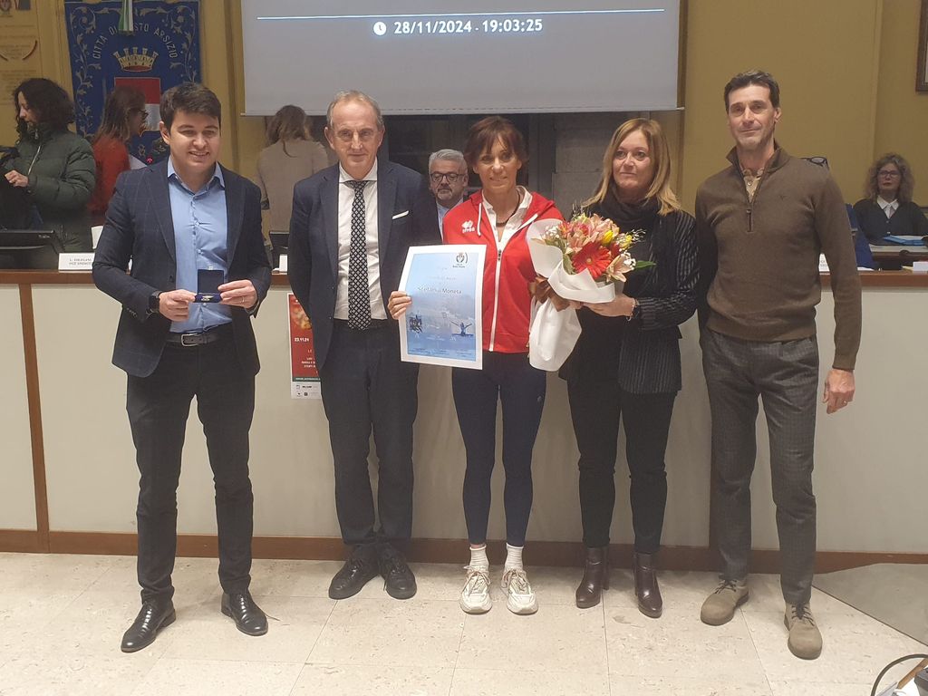 Prima dell’inizio dei lavori, la presidente dell’assise Laura Rogora, il sindaco Emanuele Antonelli, il vicesindaco e assessore allo Sport Luca Folegani hanno premiato l'atleta, affiancata da Roberto Roggiero, presidente della polisportiva.