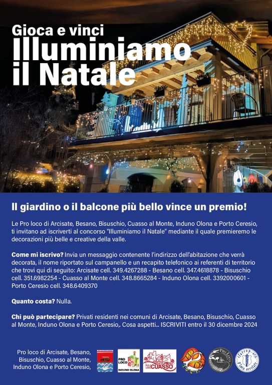 È questa l’iniziativa che le Pro Loco di sei Comuni della Valceresio hanno lanciato anche per il Natale 2024: sono quelle di Arcisate, Besano, Bisuschio, Cuasso al Monte, Induno Olona e Porto Ceresio. La partecipazione è riservata ai residenti nei sei Comuni.