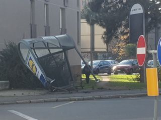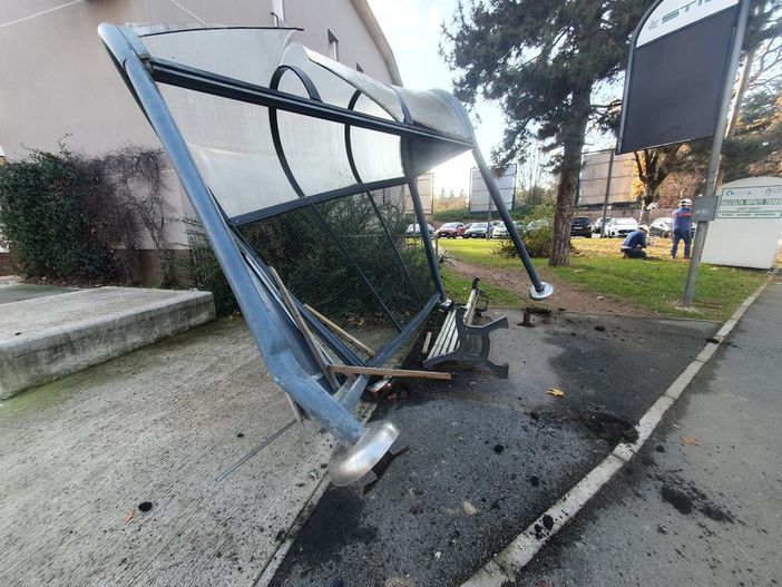 L’incidente alle 13.30 in via Mazzini. Con sospiro di sollievo: in quel momento nessuno stava attendendo il pullman alla fermata