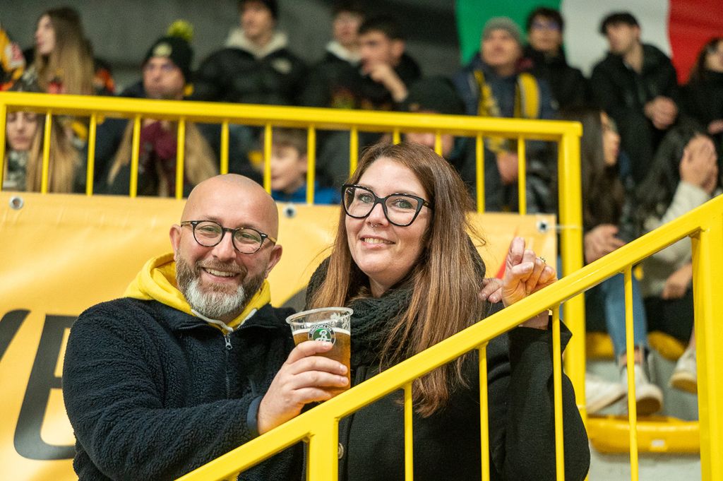 Riviviamo la serata mai così sofferta della settima vittoria consecutiva giallonera (clicca QUI) nei volti e nell'ambiente fermato dai clic di Alessandro Galbiati.