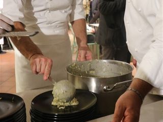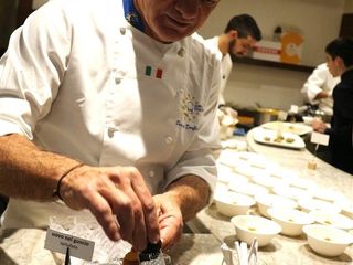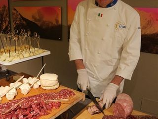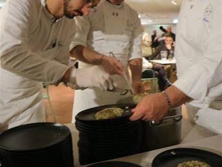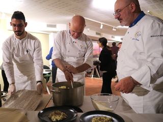 Il riso, mantecato in diretta di fronte al pubblico, ha catturato l'attenzione degli ospiti, che sono rimasti letteralmente affascinati dal gusto e sapore intenso del piatto. In apertura della serata, lo chef Valter Ferretto, rappresentante piemontese di Euro Toques e da oltre 35 anni stella Michelin, aveva deliziato i partecipanti con i migliori salumi e formaggi delle Langhe, insieme a preparazioni gustose come la battuta al coltello e l’uovo tartufato.