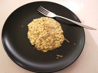 Questo piatto è stato realizzato utilizzando prodotti di grande eccellenza come il riso “Vero”, il Gorgonzola Bassi, Parmigiano 30 mesi di Boni e tartufo nero di Urbani, abbinati agli ottimi vini delle rinomate cantine Cocchi e Bava.