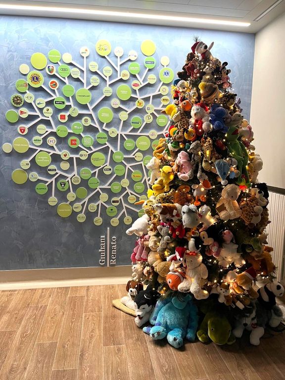 Dal mese di dicembre ad accoglierli all’ingresso, accanto all’albero del grazie, c’è un grande albero di Natale, addobbato con originalità da oltre 130 peluches. Si tratta dei pupazzi che alcuni bambini hanno scelto di prestare ai bambini dell’oncoematologia pediatrica per Natale. La maggior parte di loro frequenta la Scuola dell’infanzia di Gazzada Schianno, e sono stati guidati in questa iniziativa dall’insegnante e volontaria della Fondazione Giacomo Ascoli, Silvia Fiorin.