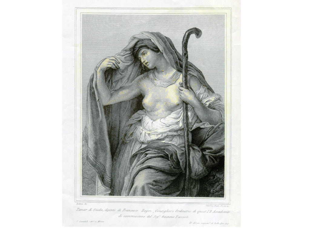 Dalla Biblioteca Civica di Varese giunge invece Le mie memorie del 1890, scritte dallo stesso Hayez in cui compare una prima versione della Tamar del 1831 in un'incisione, registrata nell’indice delle tavole con la dicitura «F. Hayez. Tamar di Giuda, acquarello a sepia, (1831), di proprietà della signora Angiolina Hayez».