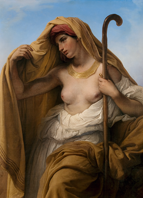 Questa la storia della protagonista del dipinto: nel libro della Genesi si narra che Tamar sposò i primi due figli di Giuda: Er e Onan, che, tuttavia, per motivi diversi, caddero in disgrazia agli occhi del Signore che li fece morire. Giuda decise di non darle in sposo, il terzo figlio Sala, come voleva la tradizione ebraica di allora. Tamar allora escogitò di mascherarsi da prostituta e circuire Giuda, che sedotto, le lasciò in pegno il suo bastone, un cordone e l’anello. Tamar rimase incinta di due gemelli e Giuda intimò di metterla al rogo, ma, una volta scoperto l’inganno, la lasciò vivere. Nell’opera di Hayez la sensuale Tamar è raffigurata proprio con i pegni lasciatole dal suocero Giuda.
