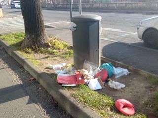 Peluche, sacchetti colmi di roba di ogni genere e fazzoletti in via Tonale, a riempire fino al colmo il cestino presente o abbandonati tutto intorno.
