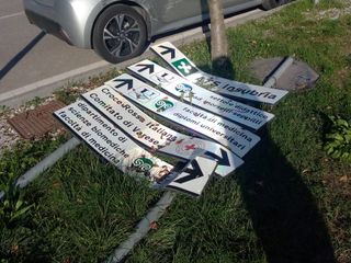 Ma il paesaggio di Varese si arricchisce anche di cartelli abbattuti. Il primo tra via Rossi e via Dunant, nel quartiere di Bizzozero: distrutte le indicazione per l'Ats Insubria, la sede della Croce Rossa di Varese e i vari dipartimenti dell'università.