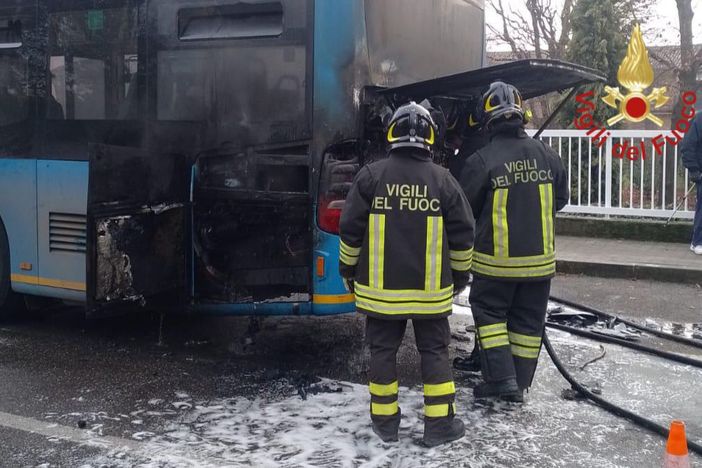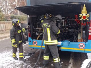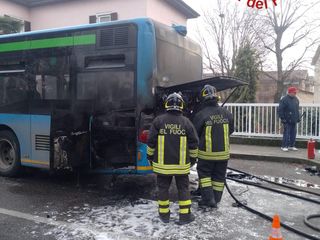 FOTO. Pullman prende fuoco a Binago, l'autista spegne le fiamme in tempo