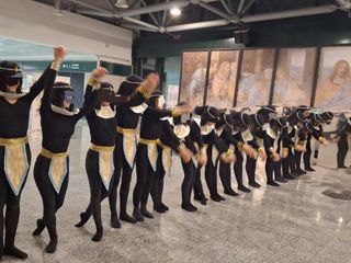 La maestra Rossana Seghezzi ha diretto il balletto che ha intrattenuto pubblico e passeggeri nel mezzanino food court del terminal 1.