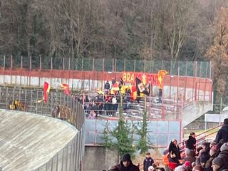 La curva del Varese sta cantando, così come gli almeno cento tifosi ospiti nella sud: clima da supersfida.